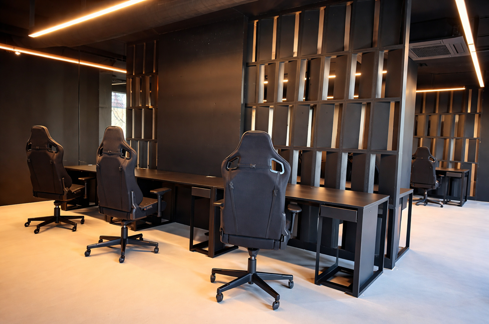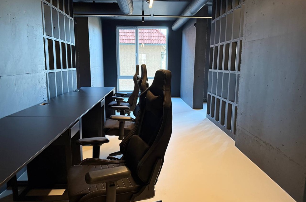 Black Room Office reprezintă spațiul de lucru al unei echipe IT, unde designul de interior devine un instrument de productivitate. Provocarea principală a proiectului a fost transformarea unui spațiu dominat de tonuri închise într-un mediu primitor, capabil să emane calm fără a sacrifica funcționalitatea. Am ales să păstrăm suprafețele brute din beton, oferind spațiului un caracter industrial autentic. Un element-cheie al amenajării îl reprezintă peretele despărțitor realizat din blocuri modulare din beton. Acestea adaugă o textură sculpturală și permit luminii să pătrundă fragmentat, creând un joc subtil de umbre și oferind în același timp o senzație de lejeritate vizuală în contrast cu soliditatea materialului.